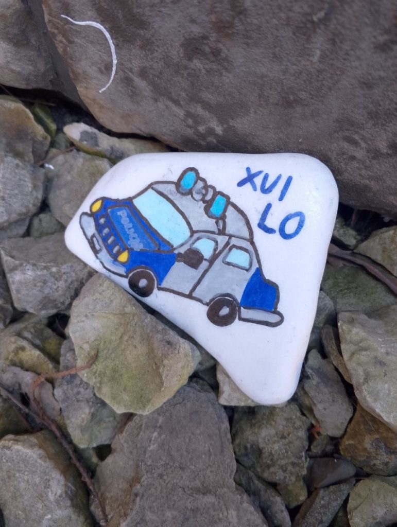 Uczniowie z zaangażowaniem malowali kamienie ozdabiając je barwnymi ilustracjami związanymi z mundurowym profilem szkoły. Gotowe kamienie w liczbie kilkunastu, zostały rozmieszczone przez uczniów w różnych miejscach naszego miasta ze szczególnym uwzględnieniem okolic szkół podstawowych.